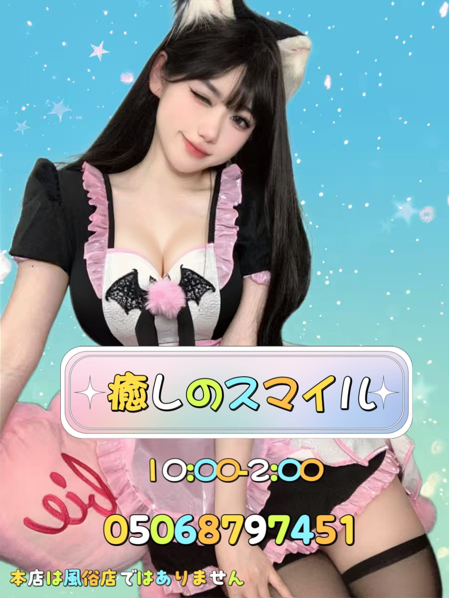 ☆☆★寛いだ至福の一時を!★☆☆ 整ったロリカワなアイドルフェイス❤️ 煌めく明るさの極みなキュートスマイル🌸 ふわ艶で魅力的"G"の迫力は その場を飲み込む臨場感 リピート率の高さも納得👑 NEW OPEN!!! 究極とも言える癒しを五感で感じて欲しい・・・ そんな思いを込めた当店は違わぬ充実したサービスを誇るお店です。 カワイイ天使達のキメの細かな行き届いたサービスに加え、 アナタの健康だけでなく、心の癒しまで追求しちゃいます。 素敵な出逢いと癒し、愛を込めてお届けしていきますね!